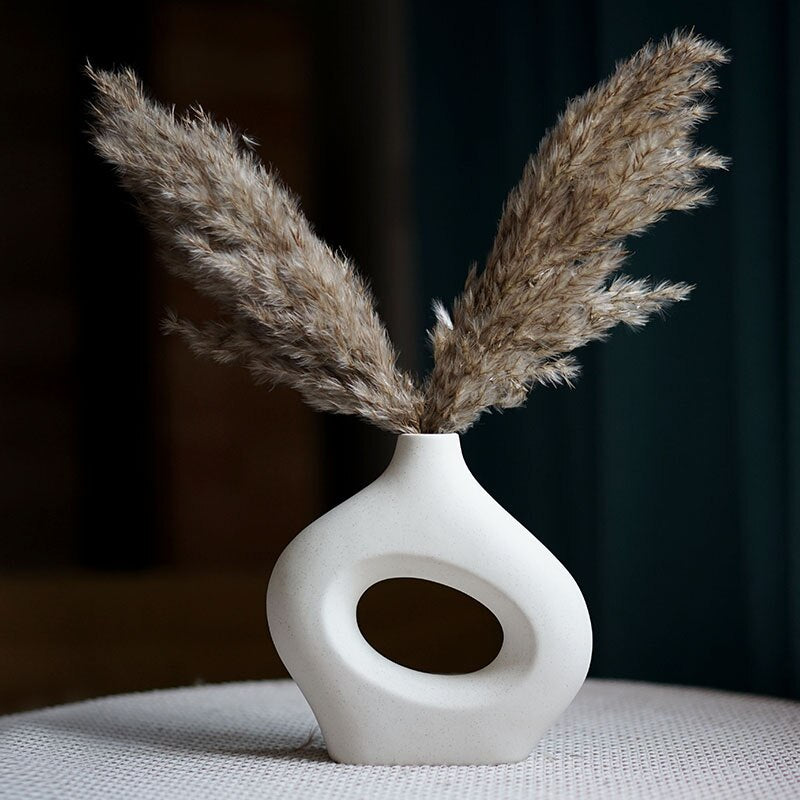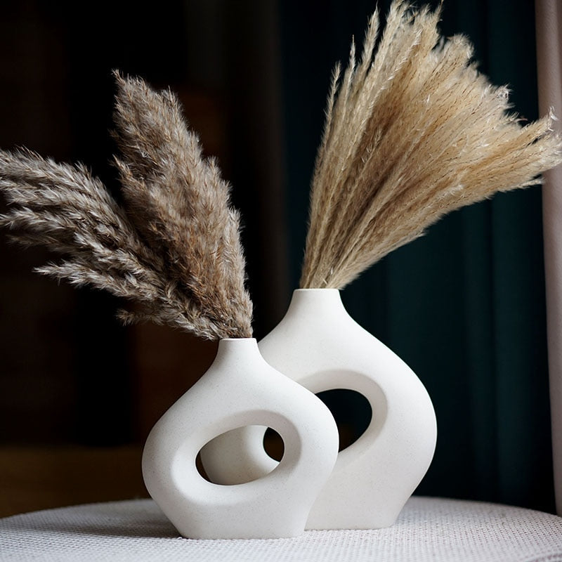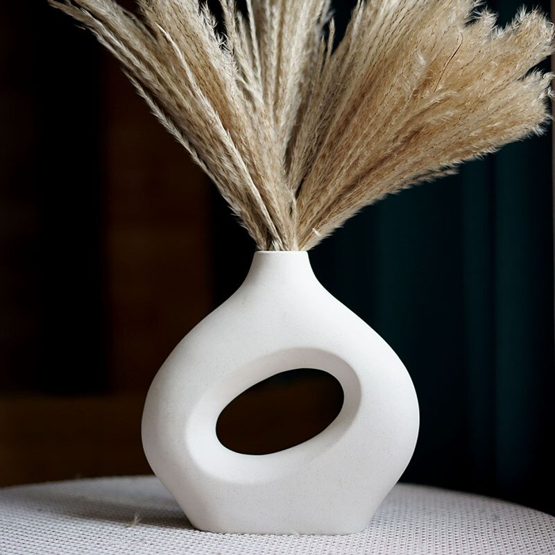 Nordic Ceramic Vase for Pampas Grass Donuts Flower Pot Home Decoration Accessories Office Living Room Interior Table Desk Decor